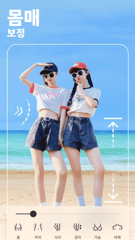 - 자동 보정만으로 부족하시다면 수십여 가지 뷰티 효과를 내맘대로 선택하고 조정할 수 있는 고급 뷰티를 써보세요. - 기본적인 피부 톤 보정과 잡티 제거는 물론, 간편한 드래그만으로 이목구비와 얼굴 윤곽, 몸매와 키 수정까지 가능해요! 어메이징!