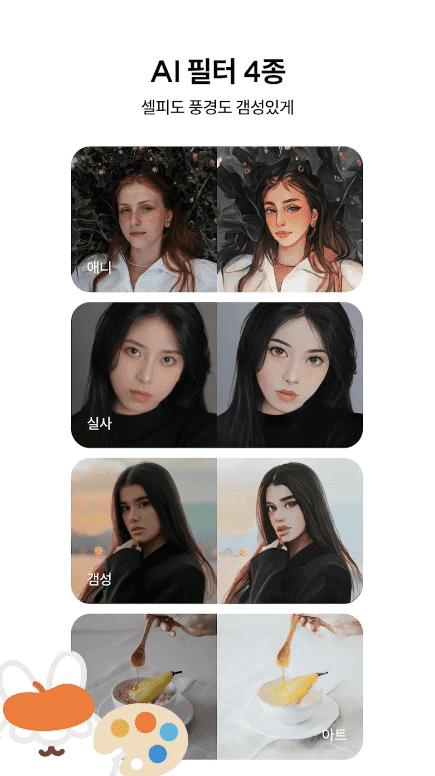 내 피부에 찰떡같이 잘어울리는 필터를 사용해보세요! 다양한 컨셉의 셀피 전용 필터로 원하는 분위기를 마음껏 연출할 수 있습니다.