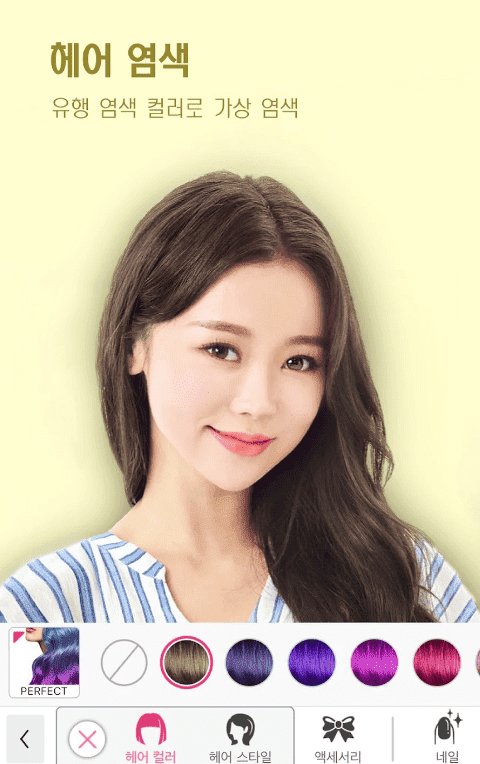 - 머리염색 메이크업.모두자연스럽게 꾸일수있어 좋고요.가발은 너무부자연스러워서..하지만 이앱을알고 계속 사용하고있네요.아참 그리고 사진오리기가없더라고.아쉽네요.