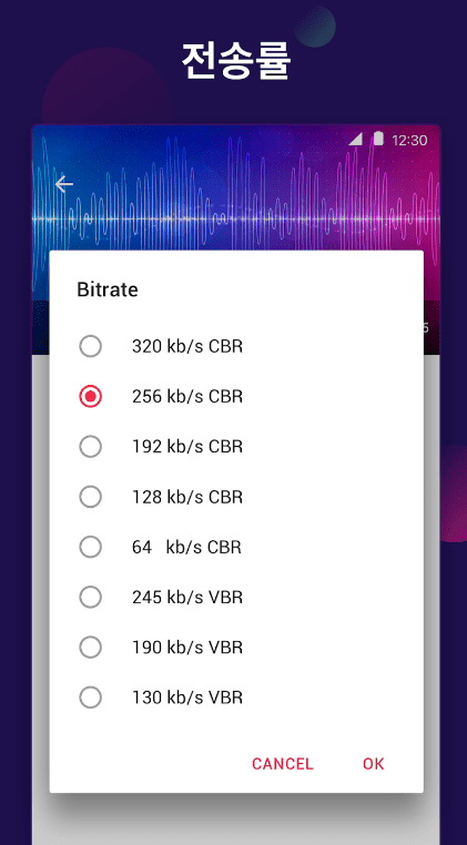 - 비트 전송률 64kb/s, 128kb/s, 192kb/s, 256kb/s, 320kb/s 등.