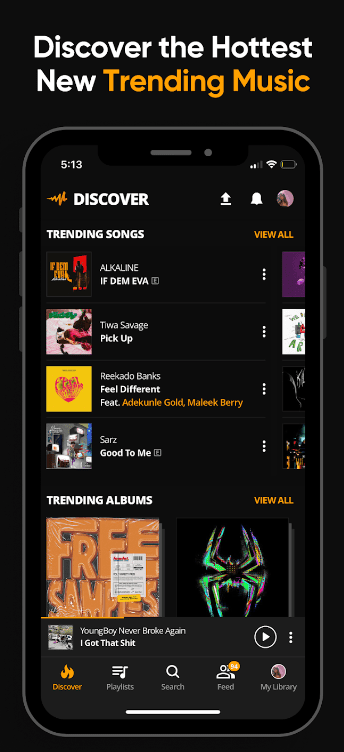 • 무제한 듣기 & 스트리밍 - 원하는 만큼 힙합, 아프로비트, 전자 음악, 레게, 댄스홀 음악을 재생하세요.