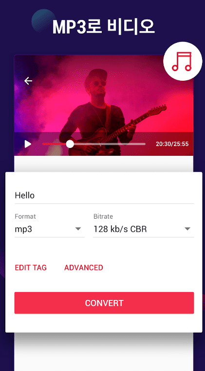 동영상을 MP3로변환 은 안드로이드를 위한 최고의 MP3 동영상 변환기입니다. 간단하고, 강력하며, 완전히 무료입니다.