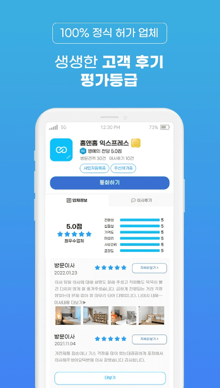 - 이 어플이 매우 편리해서 평가했어요. 이사를 준비하는 데 필요한 모든 것을 쉽게 관리할 수 있었고, 특히 견적을 쉽게 비교할 수 있다는 점이 마음에 들더군요. 그리고 이사 준비를 위해 전화를 걸 필요가 없어서 전화를 꺼려하는 분들이 사용하기에도 매우 편하다는 생각이 들었습니다 ^^