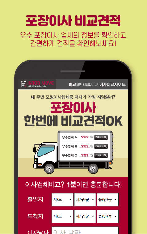 ▶ 이사(원룸이사, 용달, 포장이사, 소형이사)견적 비용을 비교해보세요.