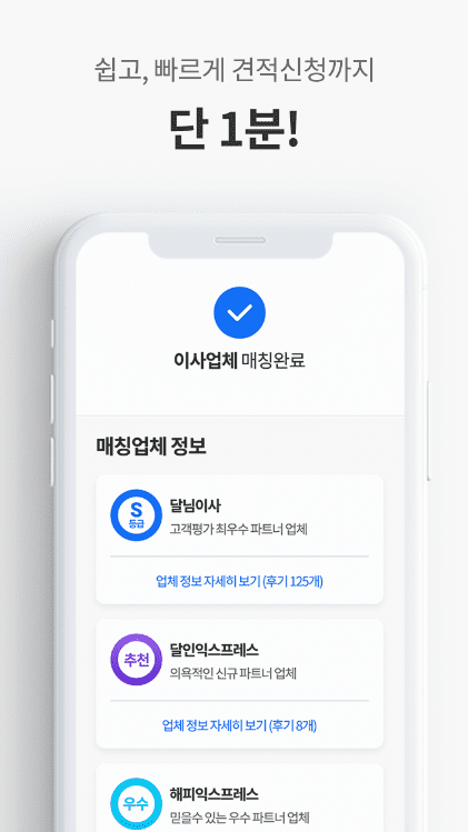 - 앱이 직관적으로 사진으로 견적을내어 기사님들과 컨택할수있게 해주어 편한이사를 할수 있었습니다