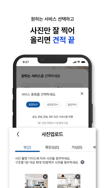 : 이사할 방사진을 찍어 올리면 합리적인 무료 견적 5건을 받을 수 있습니다.