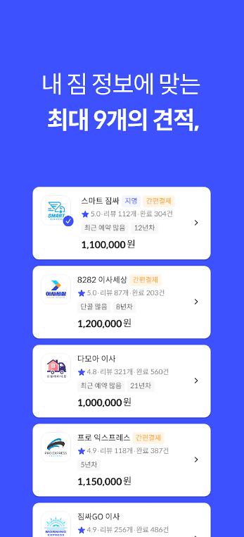 모두이사에서 업체별 후기와 견적 금액 보고 직접 결정하세요!!