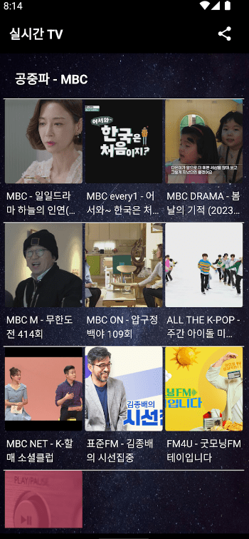 - 잘 사용하고 있읍니다. MBC방송이 간혹 가다가 멈춤현상이 있네요! 이 앱 덕분에 TV를 잘보고 있읍니다.