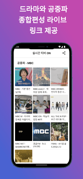공중파 채널: MBC, KBS, SBS, EBS