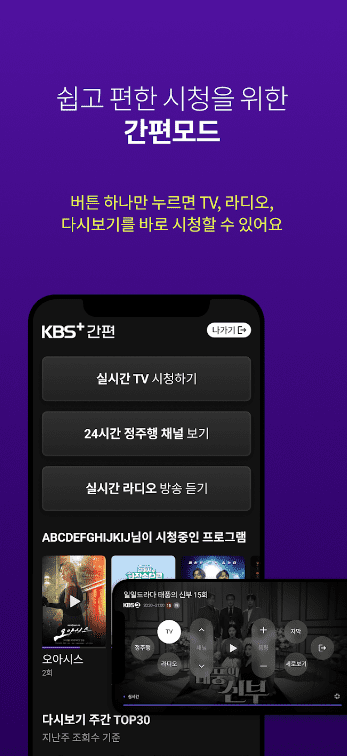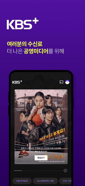 - 언제 어디서나 KBS+만 실행하면 바로 시청 가능합니다.