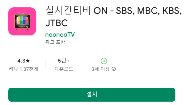 noonooTV 실시간 티비 ON 어플 다운로드 사용자 리뷰