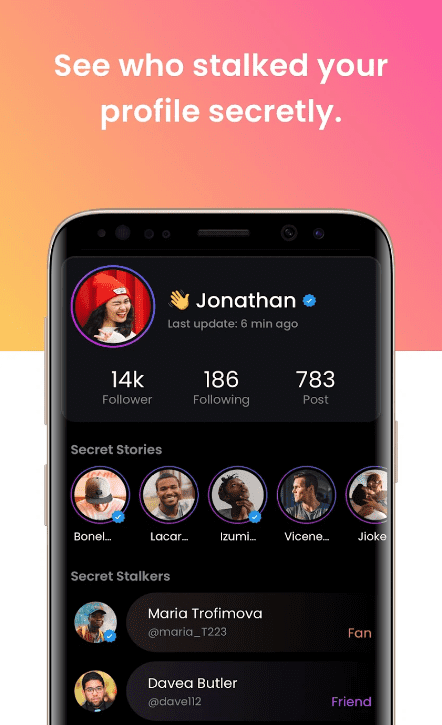 당신의 비밀 추종자, 그림자 속에서 당신을 존경하는 사람들을 찾아보세요. InStalker는 귀하의 프로필을 엿본 귀하의 팔로어와 비팔로워를 모두 보여줍니다.