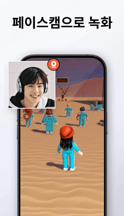 크리에이터를 위한 기능도 알차게 구성되어 있습니다. 페이스캠(Facecam) 기능을 켜면 게임 화면 위에 작은 창으로 내 얼굴을 동시에 띄울 수 있어 시청자들에게 생생한 리액션을 전달할 수 있습니다. 전면과 후면 카메라 전환도 자유롭고 화면 크기나 위치 조절도 가능해 전문적인 유튜버 못지않은 PIP(Picture In Picture) 영상을 손쉽게 제작할 수 있습니다.