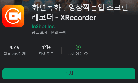 3. 화면녹화,영상찍는앱 스크린 레코더 - XRecorder 앱