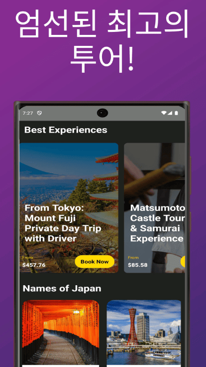 또한 단순히 보는 관광을 넘어 체험하는 여행을 위해 전 세계 여행자들이 남긴 높은 평점의 투어 상품이나 액티비티를 앱 내에서 즉시 예약할 수 있는 기능도 갖추고 있습니다. 덕분에 별도로 여러 사이트를 검색할 필요 없이 앱 하나로 풍성한 즐길 거리를 찾고 예약까지 마칠 수 있어 매우 편리합니다.