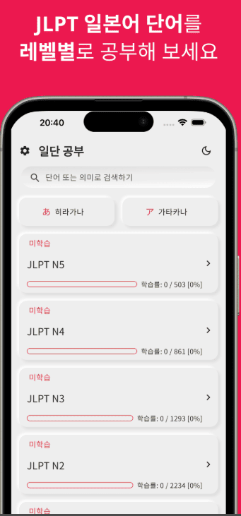 일본어 공부를 마음먹었지만 막상 시작하려니 히라가나부터 막막하고 JLPT 급수는 또 언제 따나 한숨부터 나오시나요? 그럴 땐 복잡한 생각 없이 일본어 JLPT, 일단공부로 가볍게 시작해보는 것이 정답일 수 있습니다. 이 앱은 방대한 분량을 한꺼번에 던져주는 것이 아니라 매일매일 사용자가 소화할 수 있는 적정량의 단어를 나누어 제공한다는 점이 가장 큰 매력입니다.