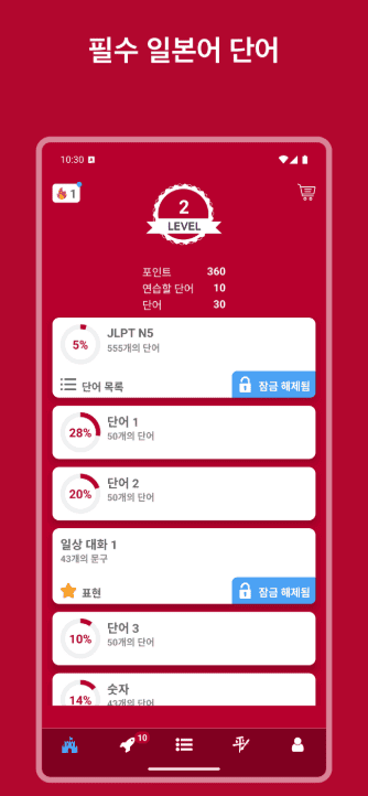 특히 JLPT 레벨별로 정교하게 분류된 단어장은 자신의 실력에 맞춰 단계별로 정복해 나가는 성취감을 줍니다. 무작정 외우는 주입식이 아니라 체계적인 커리큘럼을 따라가다 보면 어느새 N5 기초 단계부터 N1 고급 어휘까지 자연스럽게 섭렵하고 있는 자신을 발견하게 될 것입니다.