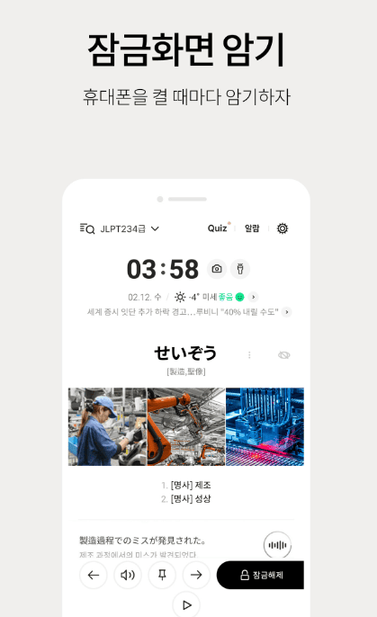 저절로암기 일본어 - 잠금화면 일본어 암기, 퀴즈 알람 어플 소개