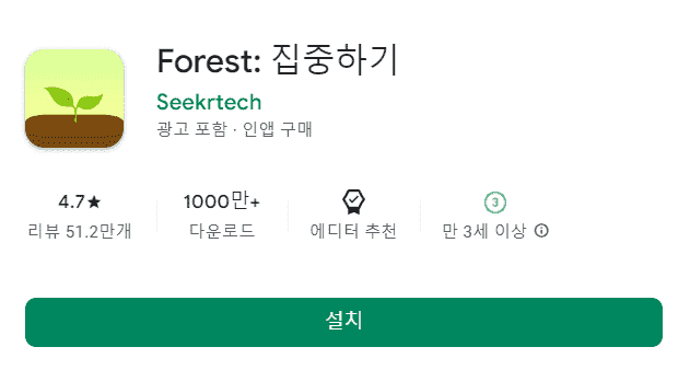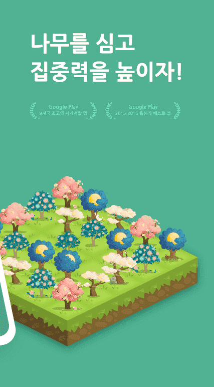 - 중2 첫 시험공부를 하는데 자꾸 스마트폰를 보게되고 집중이 안 돼서 이 앱을 깔아봤습니다 일단 앱 디자인과 사용하는게 깔끔합니다 그리고 오래 공부를 하며 만들어진 숲을 보는게 뿌듯하기도 하고 스마트폰을 보지 않아 나무를 키우는 동안 폰을 볼려고 해도 참아지네요 공부에 정말 큰 도움이 되는 것 같아서 앞으로도 잘 쓸려구요!