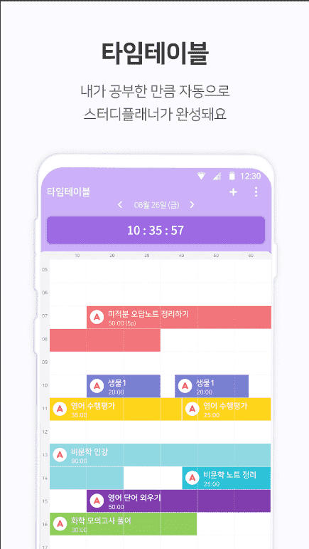 스탑워치로 측정된 시간이 과복별로 스터디 플래너를 자동으로 만들어줍니다.